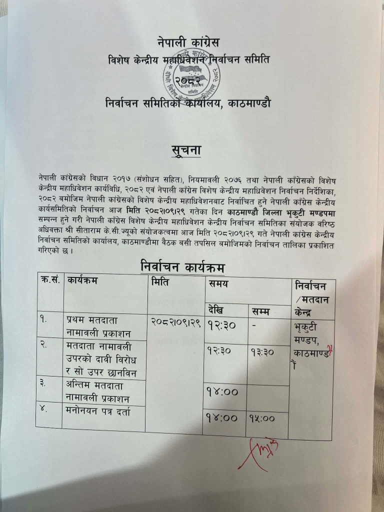 कांग्रेसले नयाँ नेतृत्व चयनका लागि पूरानो निर्वाचन कार्यतालिका खारेज गर्दै नयाँ तालिका सार्वजनिक गरिसकेको छ।